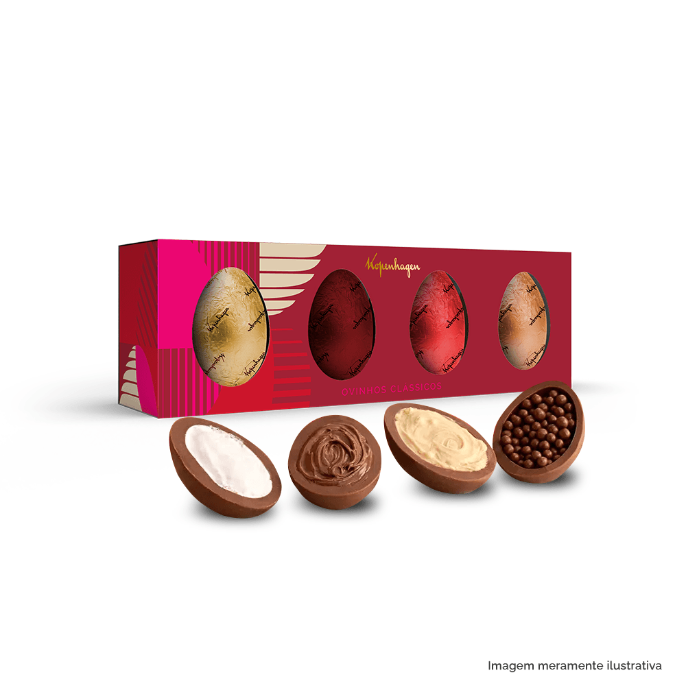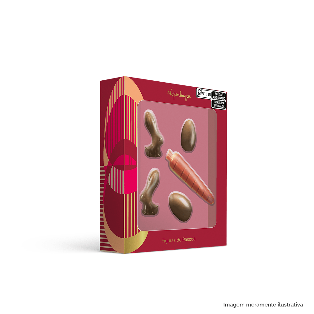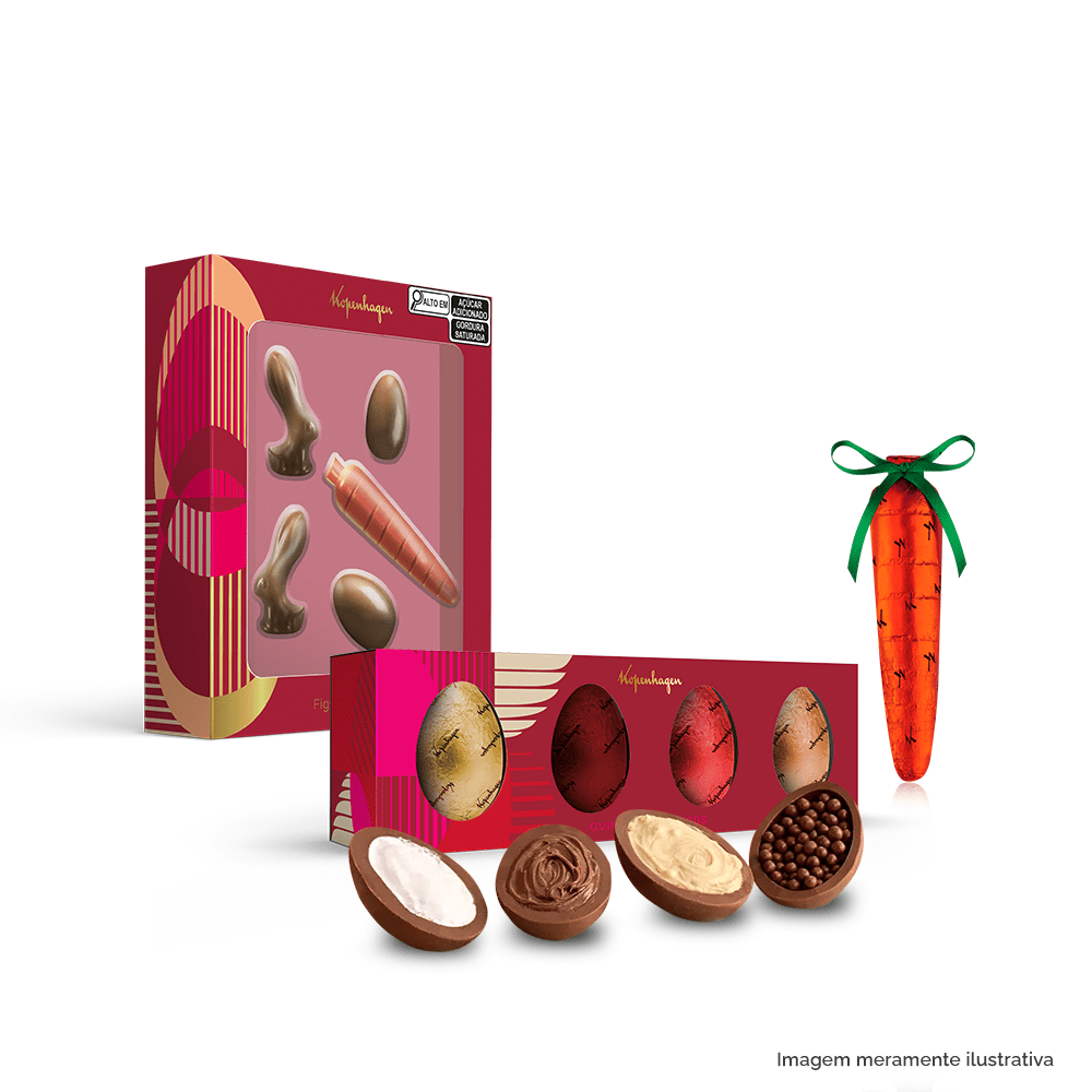 Contém: 1 Régua Ovinhos Clássicos de Páscoa 235G, 1 Figuras de Páscoa 120G e 1 Cenoura de Páscoa 50G.