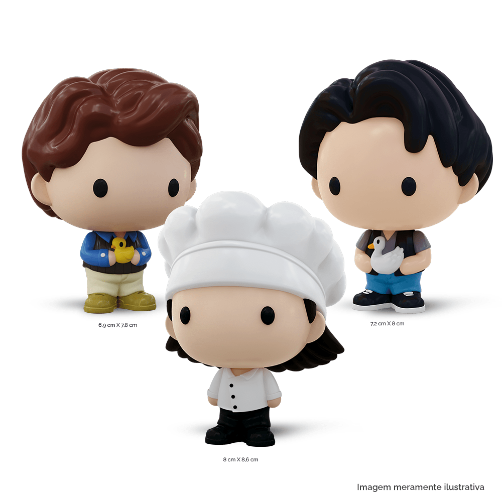 Contém 1 Ovo de Páscoa Friends Monica Chandler Joey 120G, 1 Tablete Chocolate ao Leite Friends 100g e 5 Minitabletes ao Leite Friends 10g.