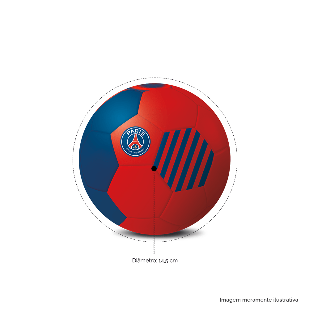 Ovo de chocolate ao leite e 1 minibola temática PSG com dimensões aproximadas de 14,5cm de diâmetro.
