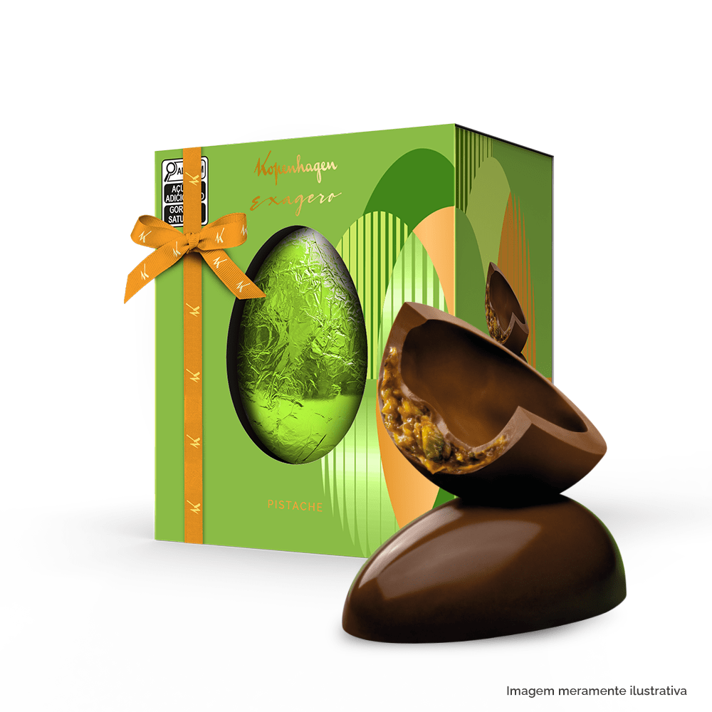 Deleite-se com o máximo do sabor e sofisticação nesta Páscoa com o Exagero Pistache Caramelizado. Ovo de chocolate ao leite com recheio de caramelo com pistache. Ovos da categoria Exagero tem mais recheio que os ovos tradicionais e oferecem uma experiência ainda mais indulgente.