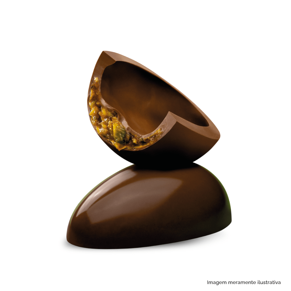 Ovo de chocolate ao leite com recheio de caramelo com pistache