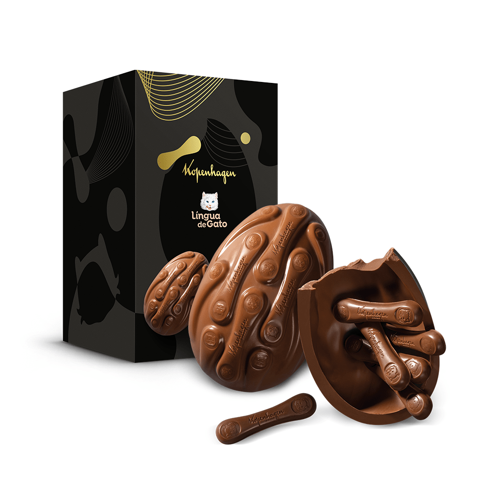 O Ovo de Páscoa Língua de Gato é a versão perfeita do inesquecível clássico da Kopenhagen. Feito com chocolate ao leite da mais alta qualidade, especialmente apreciado por sua suavidade e sabor marcante, é a opção ideal para se deliciar ou presentear. Ainda conta com as irresistíveis línguas de gato em chocolate ao leite.