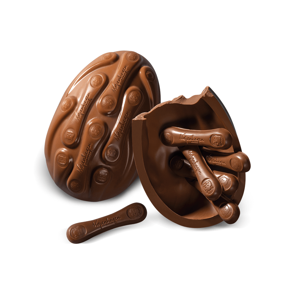 Ovo de chocolate ao leite e línguas de chocolate ao leite.