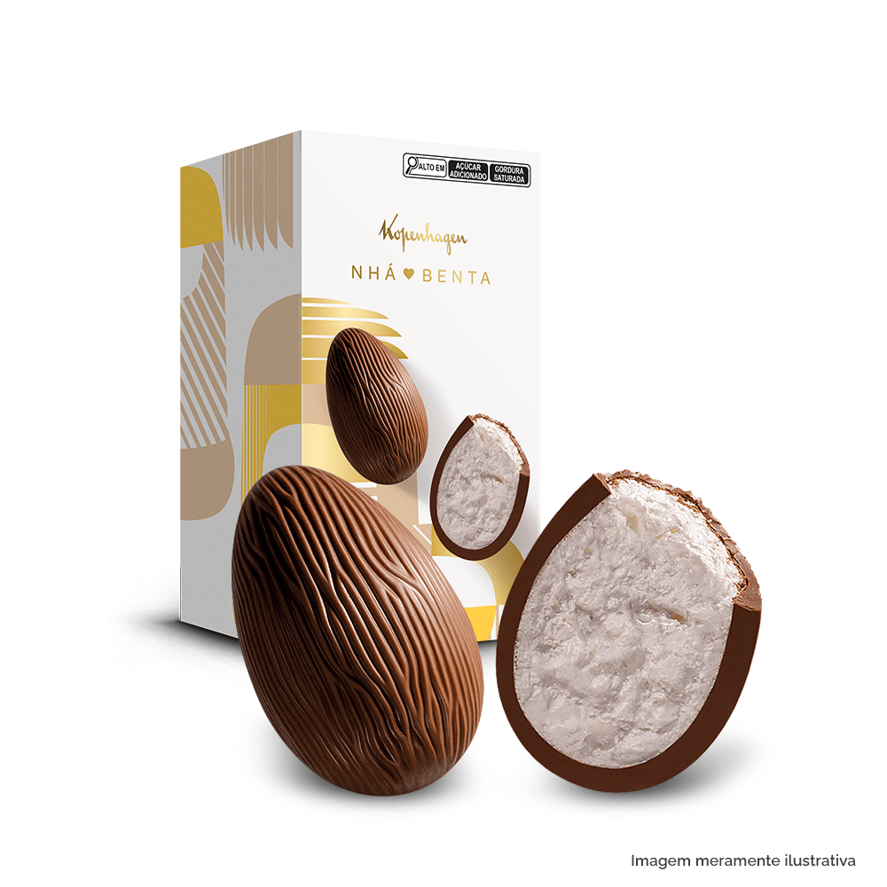 Uma homenagem ao clássico adorado que combina a suavidade do chocolate ao leite com o recheio de marshmallow tradicional Nhá Benta. Ovo de chocolate ao leite com recheio de marshmallow tradicional Nhá Benta.